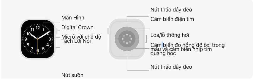 Digital Crown có chức năng phản hồi cảm ứng Nút sườn Cử chỉ chạm hai lần và cử chỉ lắc cổ tay Siri |