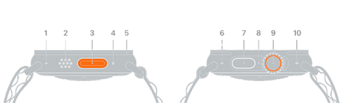 Micrô Loa Nút Tác Vụ có thể tùy chỉnh Còi Báo/Loa Ăng-ten (GPS, di động) Micrô Nút sườn Micrô Digital Crown Đo độ sâu/cảm biến nhiệt độ nước/cao độ kế